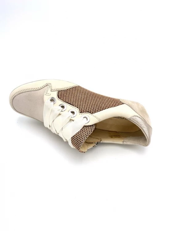 Basket Compensée En Cuir Crème à Lacets | Petite Pointure Femme | Softwaves Creme