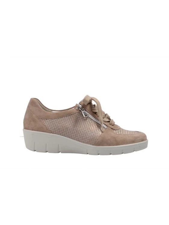 Basket Lacets Compensée En Cuir Suédé Beige | Petite Pointure Femme | Semler Beige