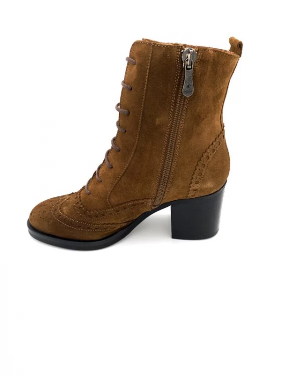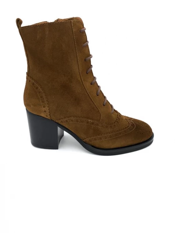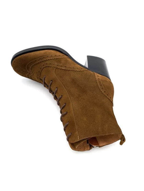 Bottine à Lacets En Nubuck Cognac à Talon | Petite Pointure Femme | Ellen Kassel Cognac