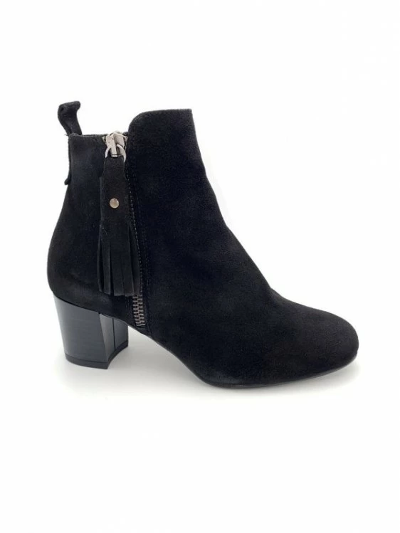 Bottine à Zip à Talon Et Fantaisie En Nubuck Noir | Petite Pointure Femme | Ellen Kassel Noir
