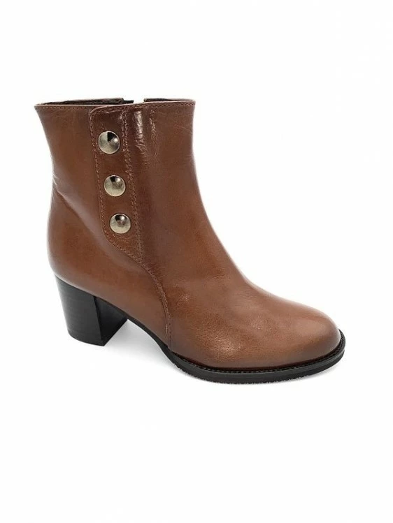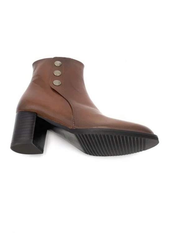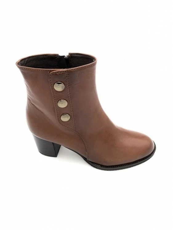 Bottine Bouton Cognac En Cuir à Talon | Petite Pointure Femme | Ellen Kassel Cognac