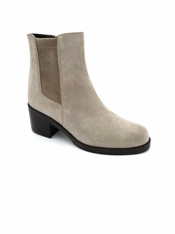 Bottine Chelsea En Cuir Velours Taupe à Talon | Petite Taille Femme | Ellen Kassel Taupe