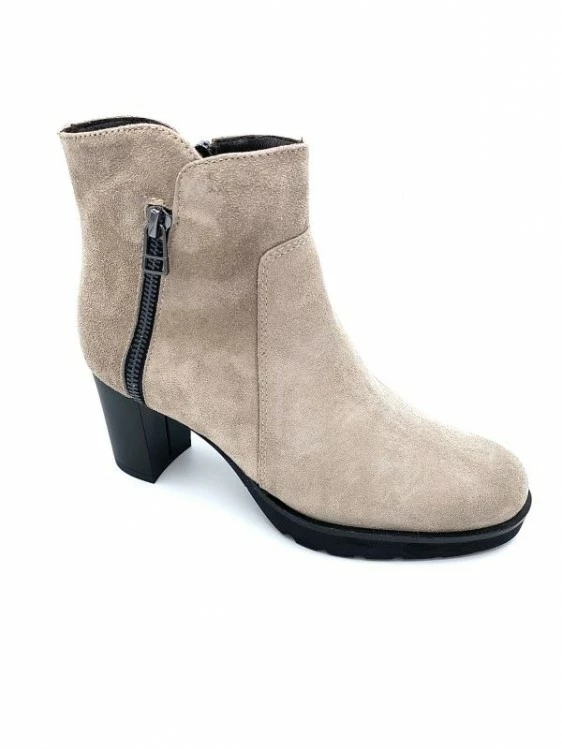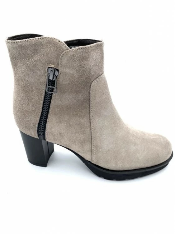 Bottine En Velours Cuir Taupe à Talon | Petite Taille Femme | Ellen Kassel Taupe