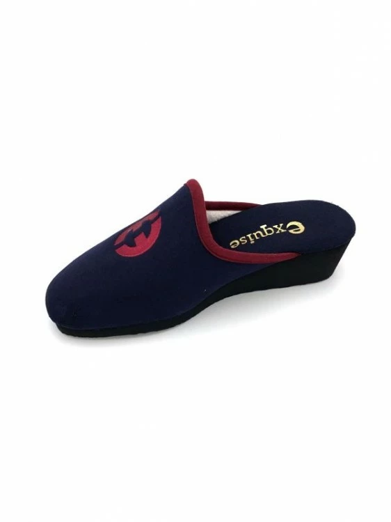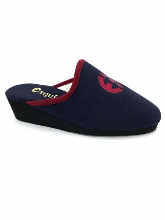 Chausson En Alcantara Marine Et Rouge Compensé | Petite Taille Femme | Exquise Marine Rouge