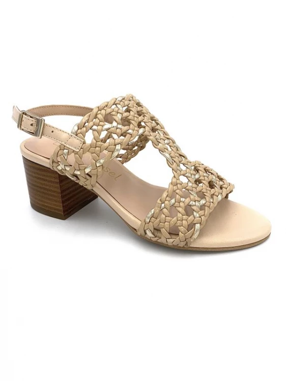 Chaussure Sandale Tressé à Talon En Cuir Camel | Petite Pointure Femme | Ellen Kassel Camel