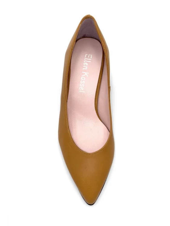 Escarpin Pointu à Talon En Cuir Cognac | Petite Taille Femme | Ellen Kassel Camel