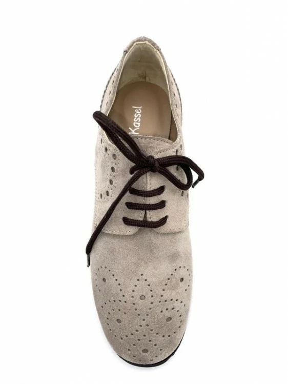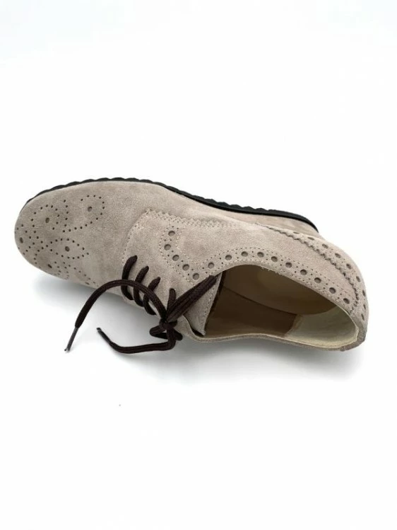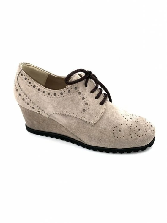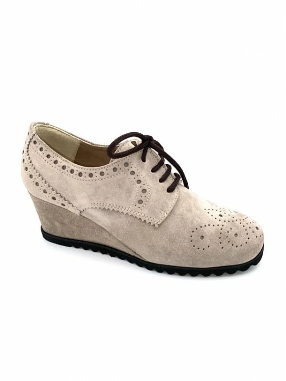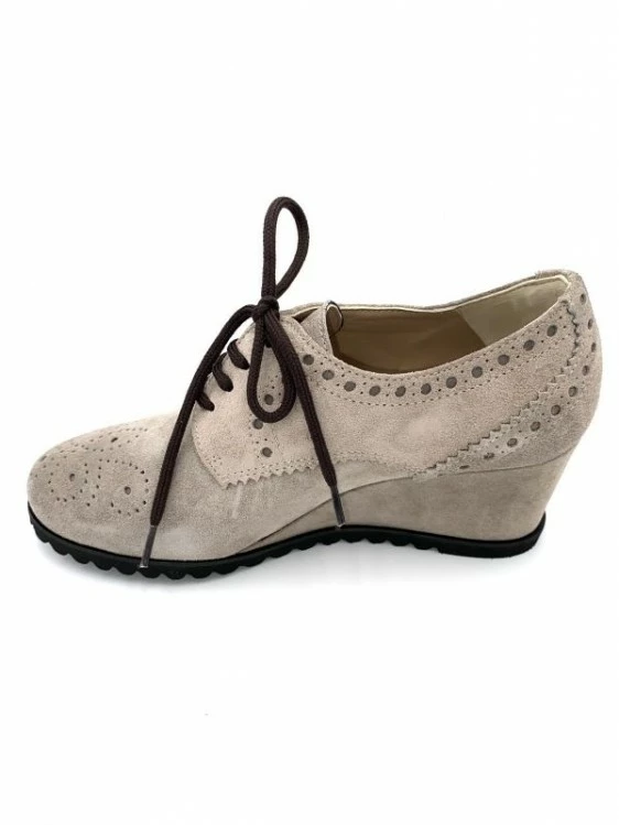 Lacet Compensé Habillé Bout Fleuri Taupe En Velours | Petite Taille Femme | Ellen Kassel Taupe