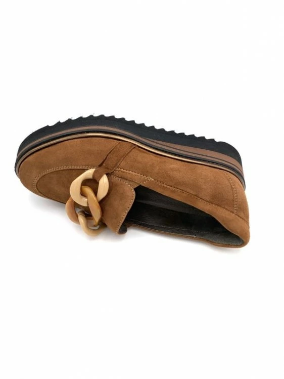 Mocassin En Cuir Cognac Compensé Avec Fantaisie | Petite Pointure Femme | Softwaves Cognac
