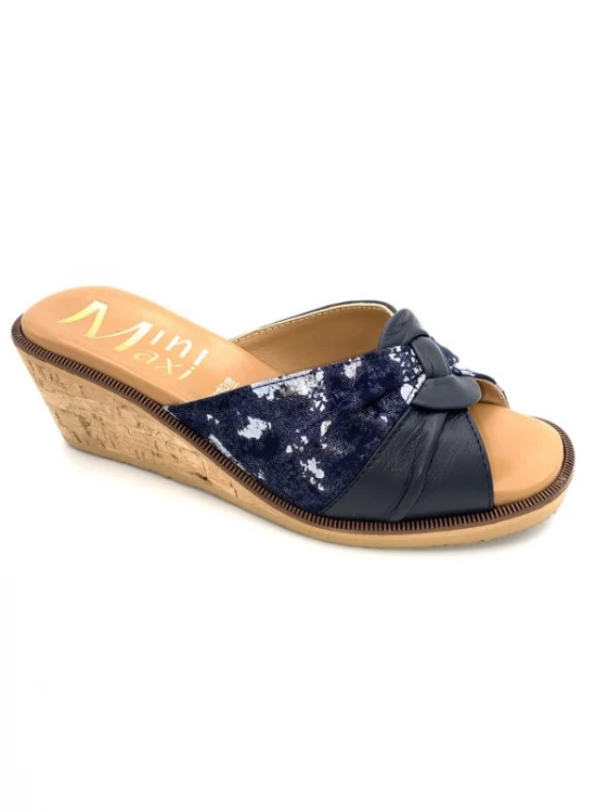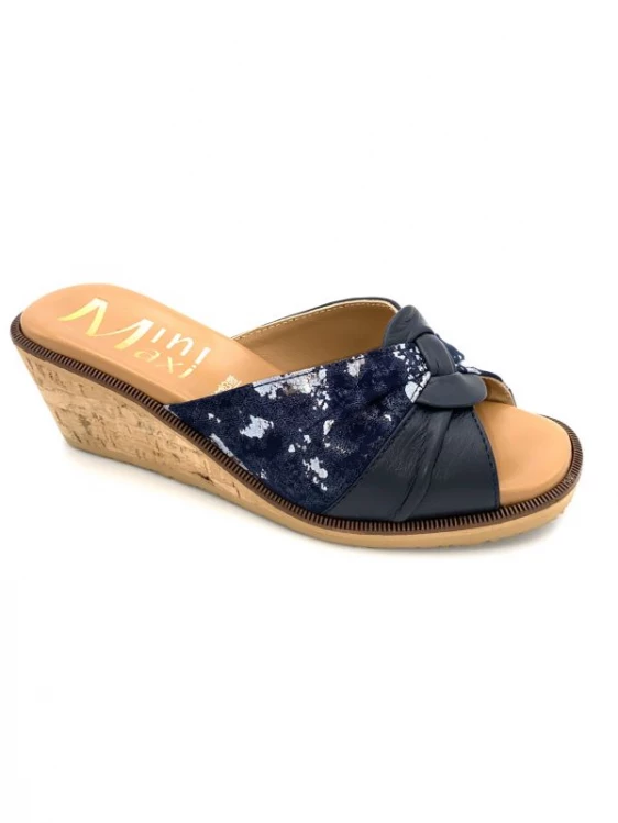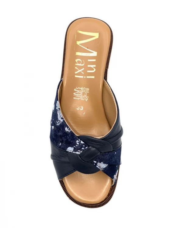 Mule En Cuir Et Nubuck Marine Fantaisie | Petite Pointure Femme | Mini Maxi Marine