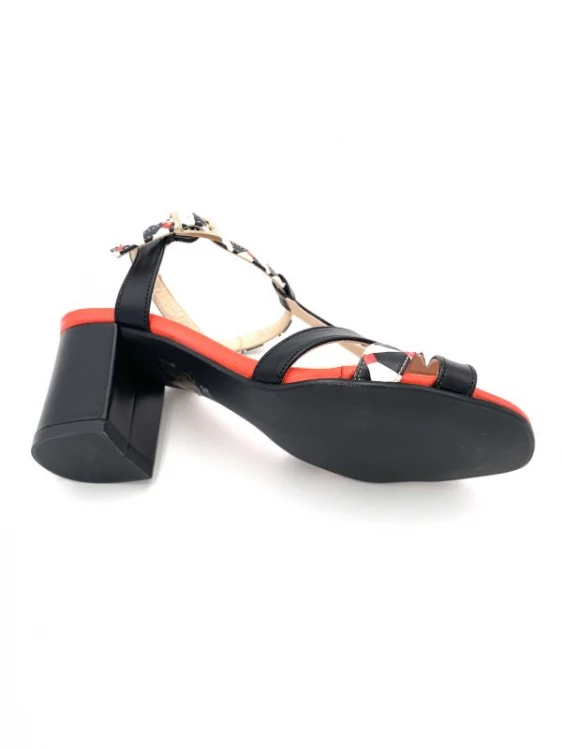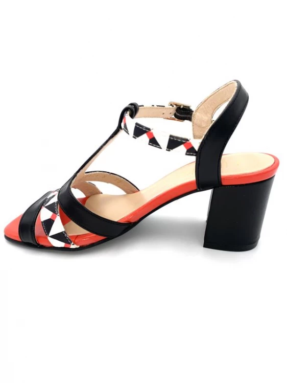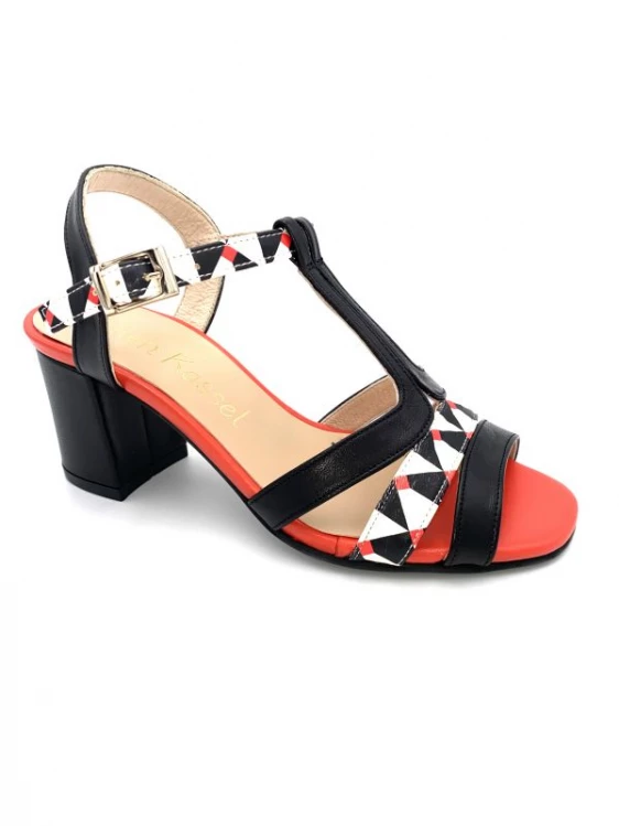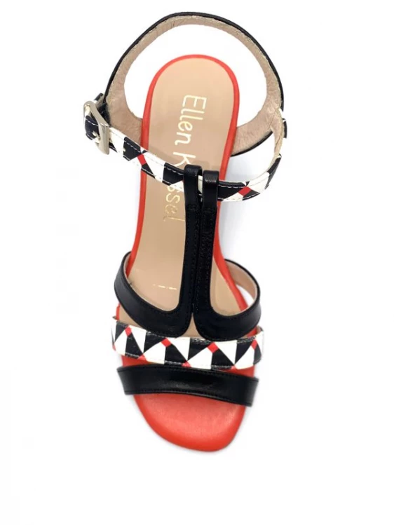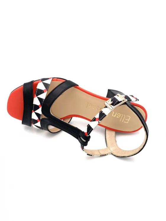 Sandale Salomé En Cuir Noir Blanc Rouge à Talon | Petite Pointure Femme | Ellen Kassel Noir-blanc
