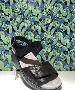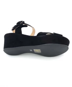 Sandale Compensée Avec Semelle Amovible En Velours Cuir Noir | Petite Taille Femme | Semler Noir